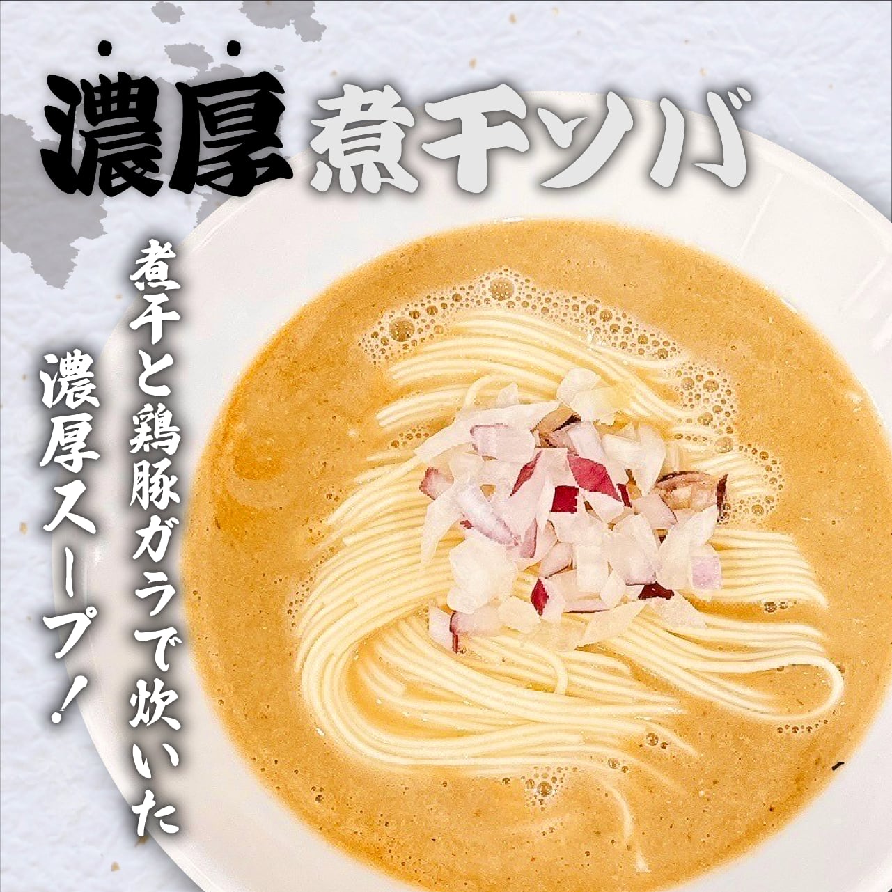 数種類の煮干と鶏豚ガラで炊いた濃厚スープです