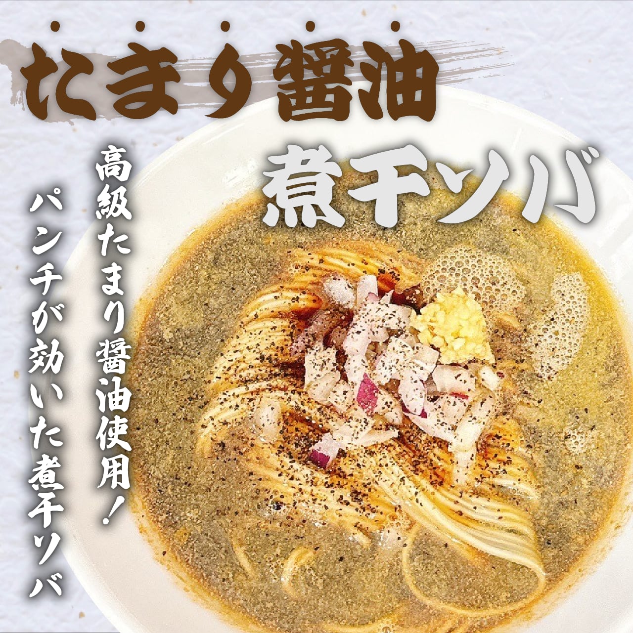 高級たまり醤油を使用した黒胡椒が効いたパンチのある煮干ソバです